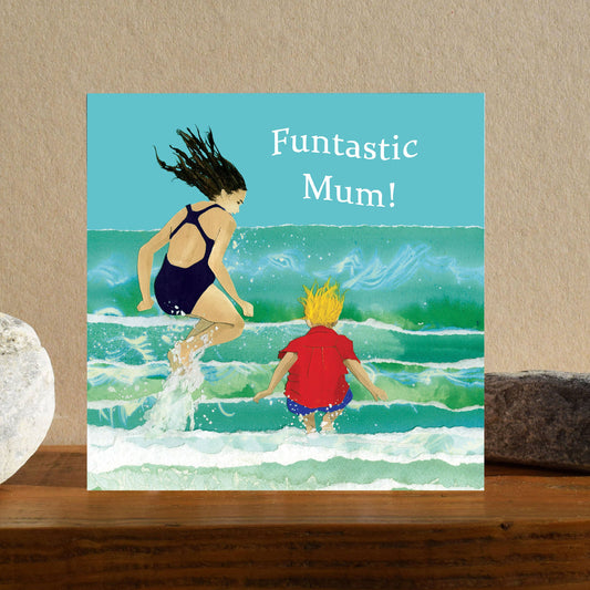 'Funtastic Mum' Sea Swimming Card (jumping waves)
