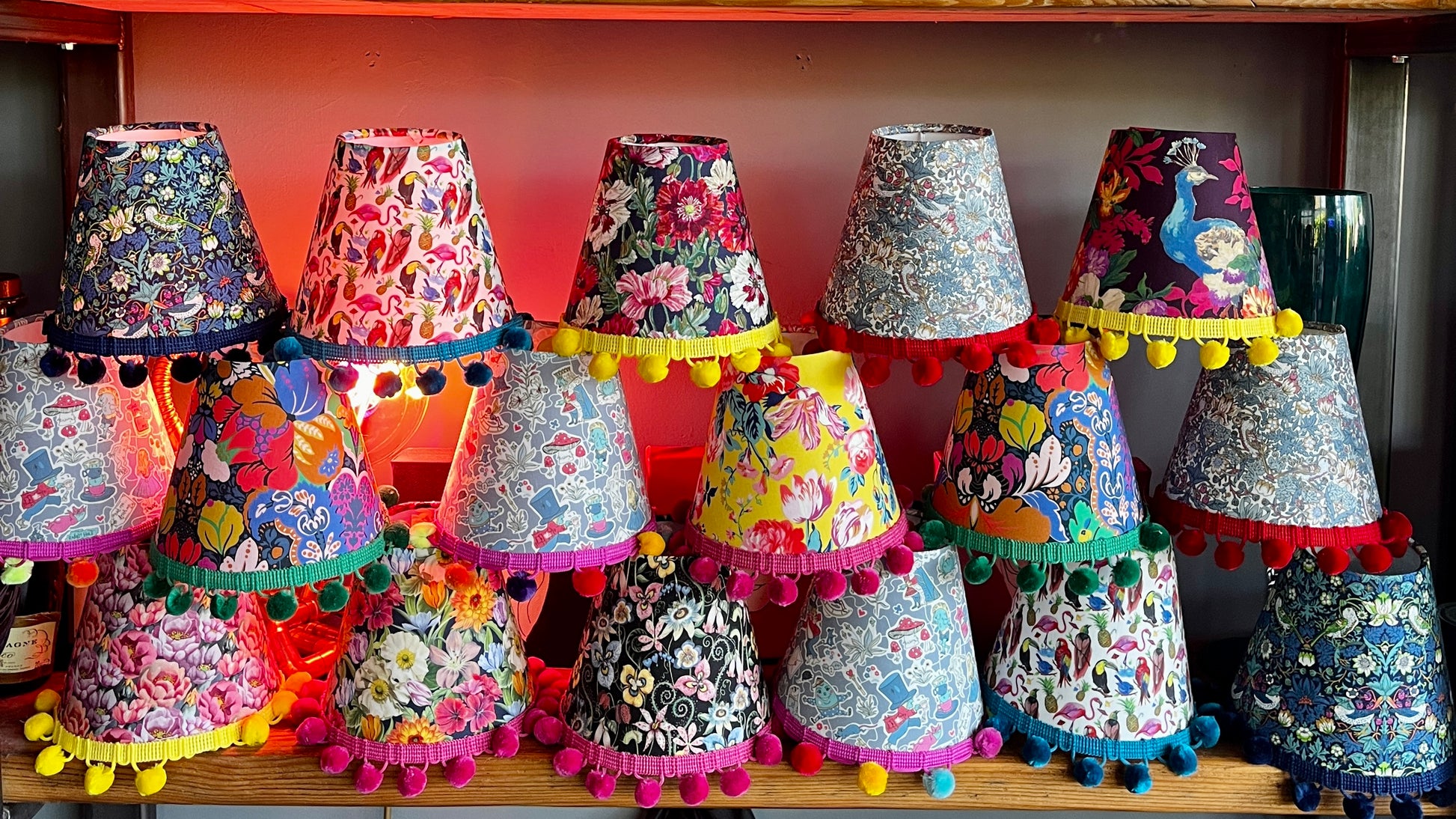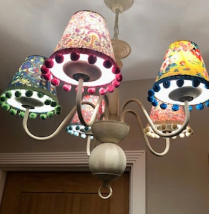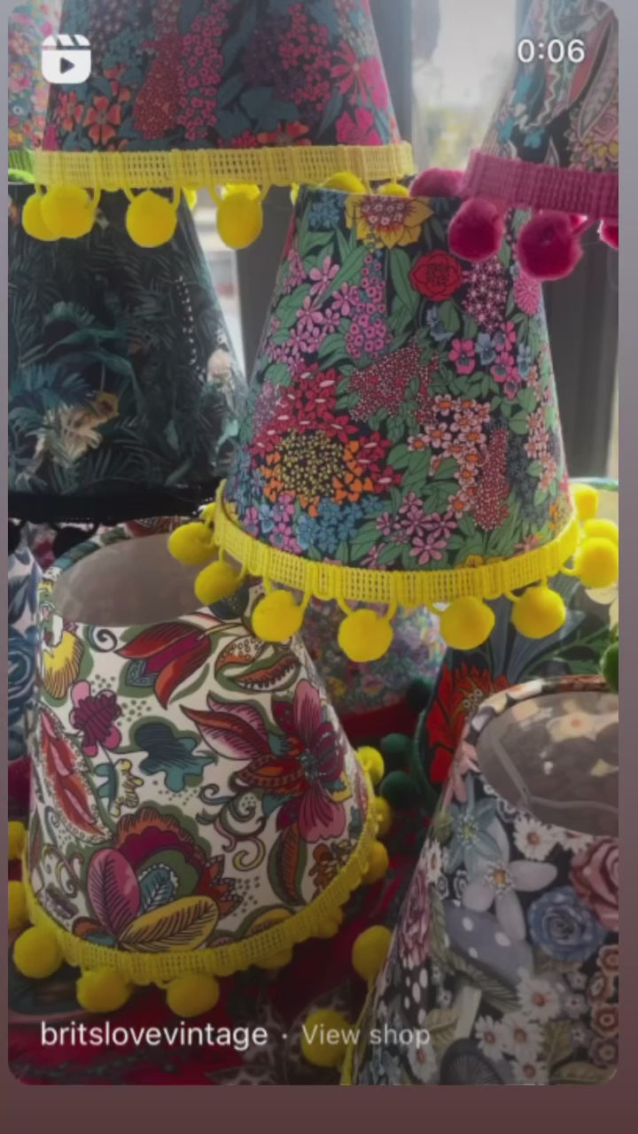 Handmade Lampshade; using fabulous Liberty of London Prints (other fabric choices available) with (or without) bright Pom Poms.