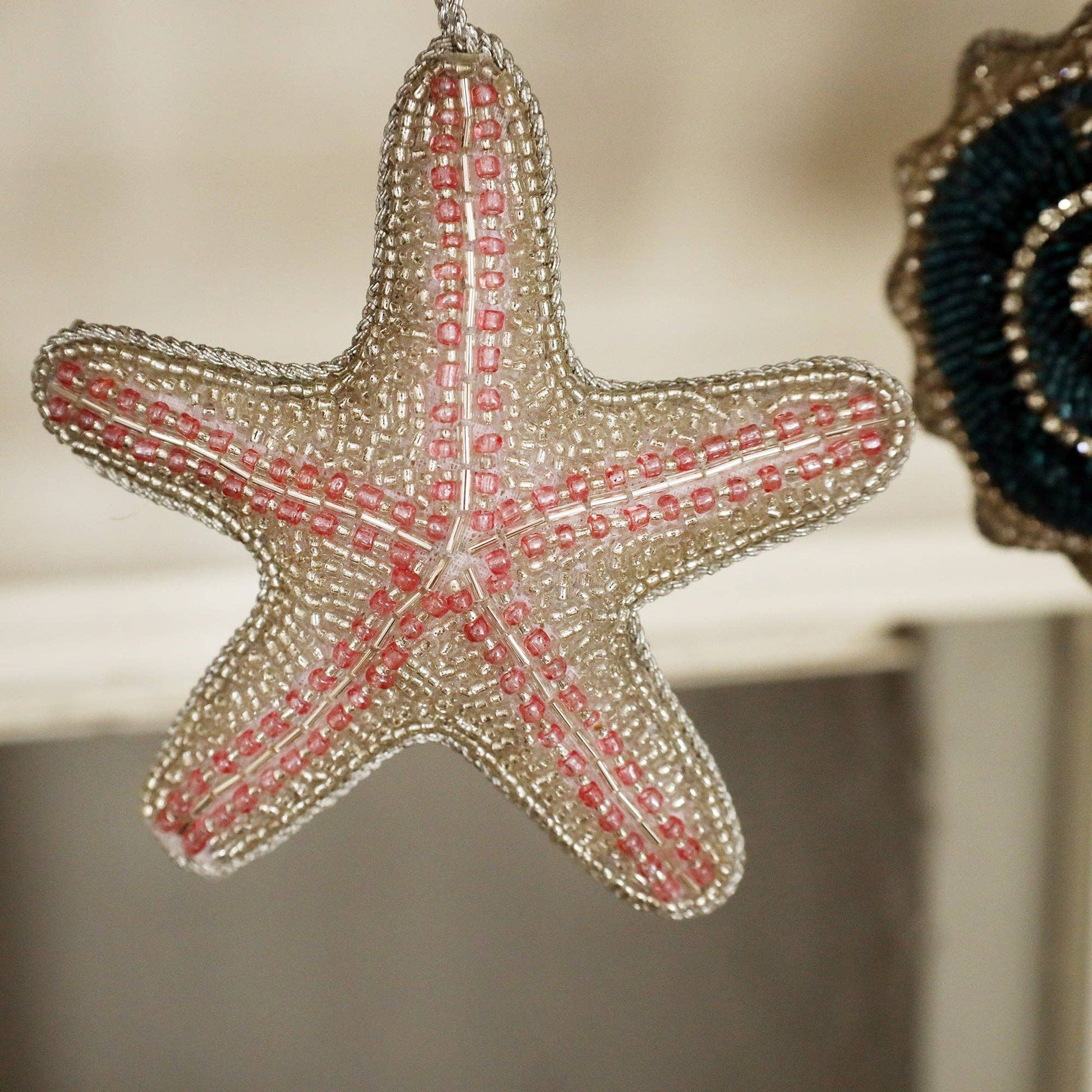 This hand-beaded starfish decoration is a perfect way to bring the serenity of the sea into your home all year round. Made with beautiful glass beads in pinks and silver, it will remind you of happy days by the sea. Who doesn't love a starfish? These decorations are perfect for adding a touch of coastal charm to any room, and make a great gift for anyone who loves the ocean or beach.