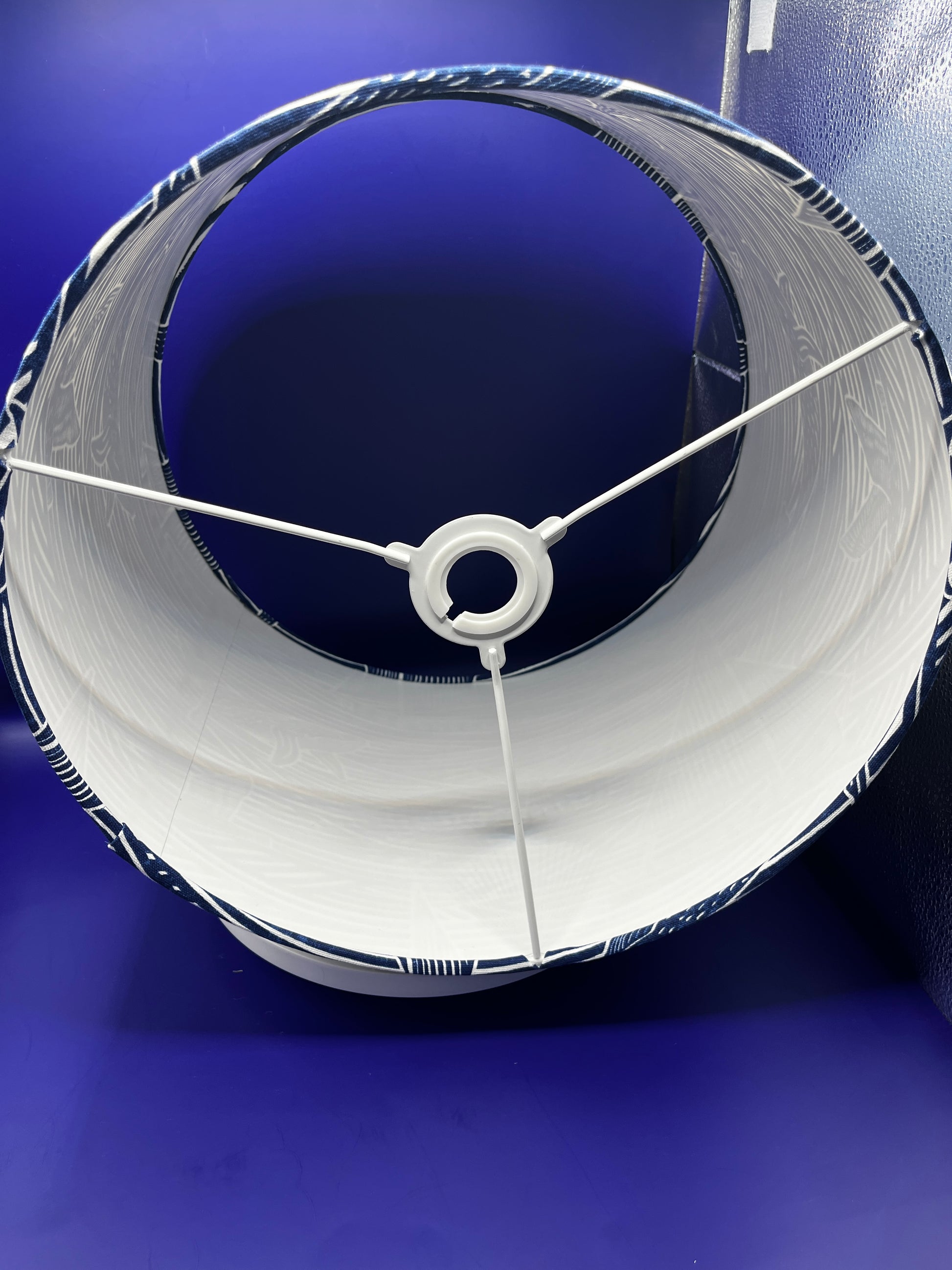 Each lampshade is unique with rolled edges and a single seam. Fabric placement will vary with each lampshade I always do my best to ensure a visually pleasing design. note it is not always possible to match the pattern at the seam due to pattern placement.