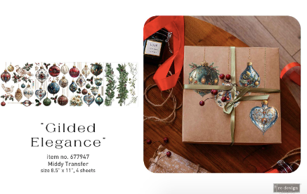 If ornaments could sparkle on their own, this would be it. The Gilded Elegance Middy Transfer is packed with rich jewel-toned baubles, intricate gold accents, elegant birds, and evergreen branches. Whether you're embellishing holiday gift boxes, cabinet doors, or decorative signs, this design adds that luxe holiday charm without ever picking up a brush.