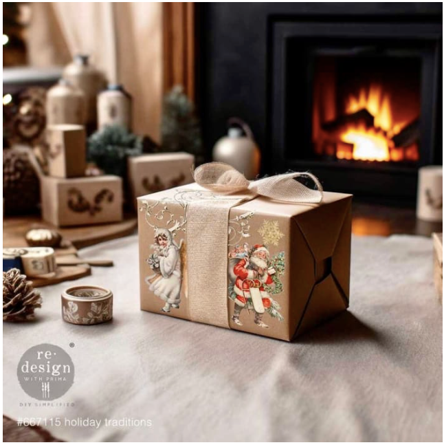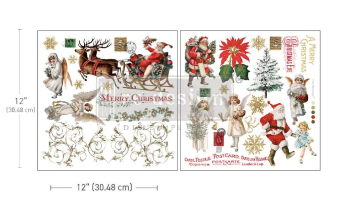 “Holiday Traditions’ is another delightfully designed Maxi Transfer in the Redesign Prima holiday collection! Vintage Santas, sweet angels, snowflakes, stamps, a darling girl, and lots of text are combined on two 12”x12” transfer sheets, allowing you to use them on a variety of projects to transform your home into a winter wonderland.