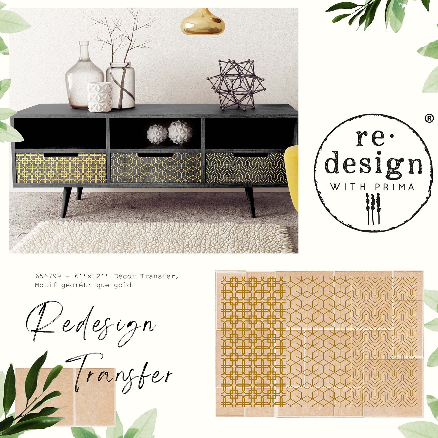 Transform furniture into a statement piece with this mid-century modern Motif Geometrique rub on transfer for furniture! Offering three golden geometric patterns, this transfer will instantly elevate any project and make home decor dreams come true.
