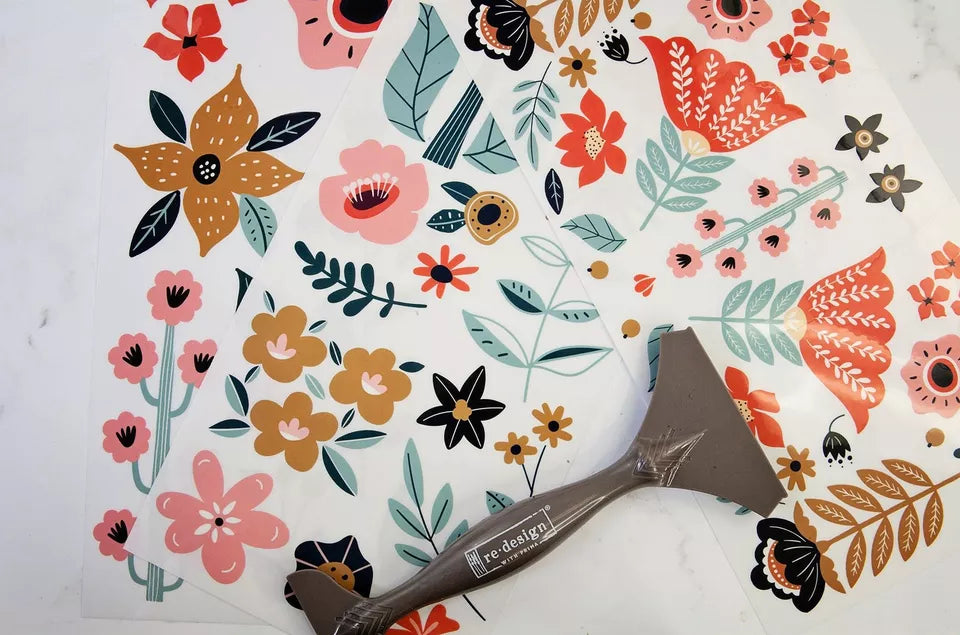 Our transfer is so easy to use: simply peel off the protective backing, apply transfer to the prepared surface, rub on the design with an included stick (or use our Transfer Tool), peel off the top sheet (check to make sure the whole design transferred), and burnish to remove any existing halos. Look for the BEST selection of Décor Transfers in the world, now in multiple sizes, only from Redesign with Prima®!