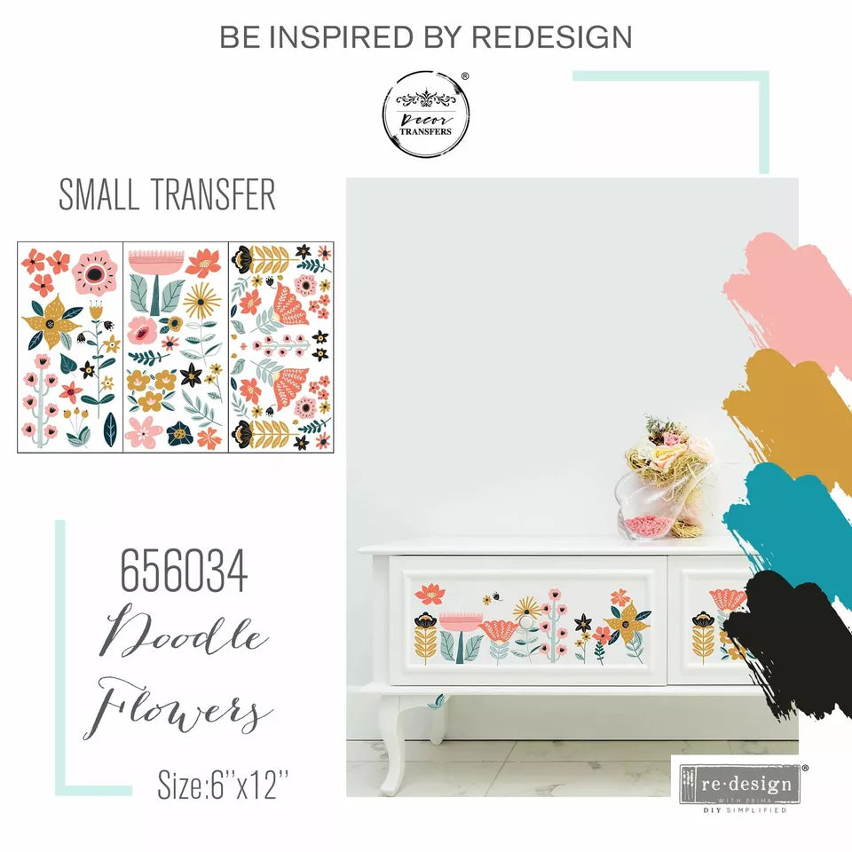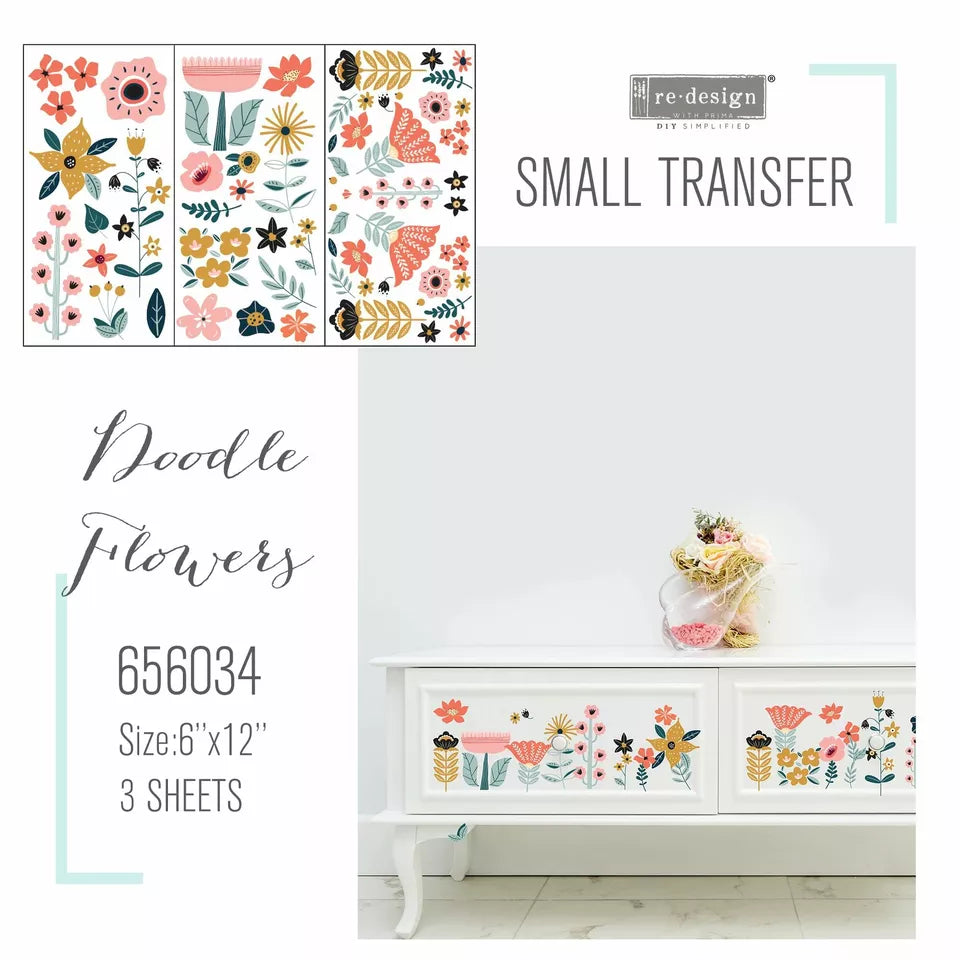 Redesign With Prima Doodle Flowers Midi Decor Transfer, Flower Pattern, Floral Designs. Explore the many possibilities of transforming your home with our Decor Transfers. This new size of transfer from ReDesign with Prima is ideal for pairing with other transfers in the range, or for use on smaller projects. Exceptionally detailed, gorgeously composed and effortlessly easy to apply.