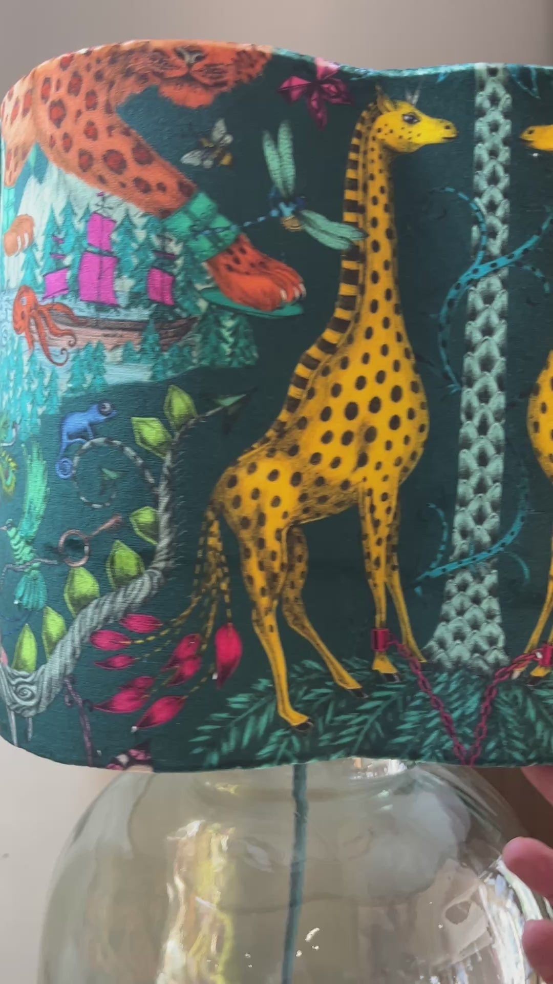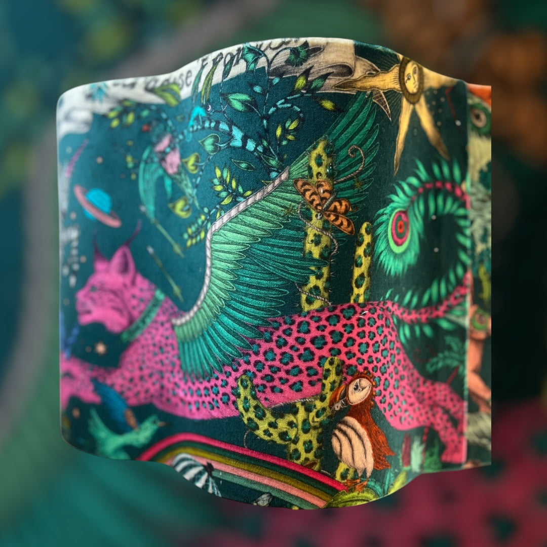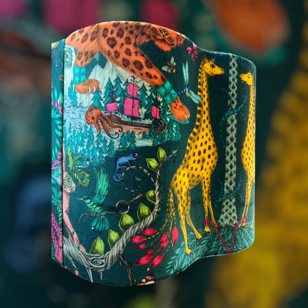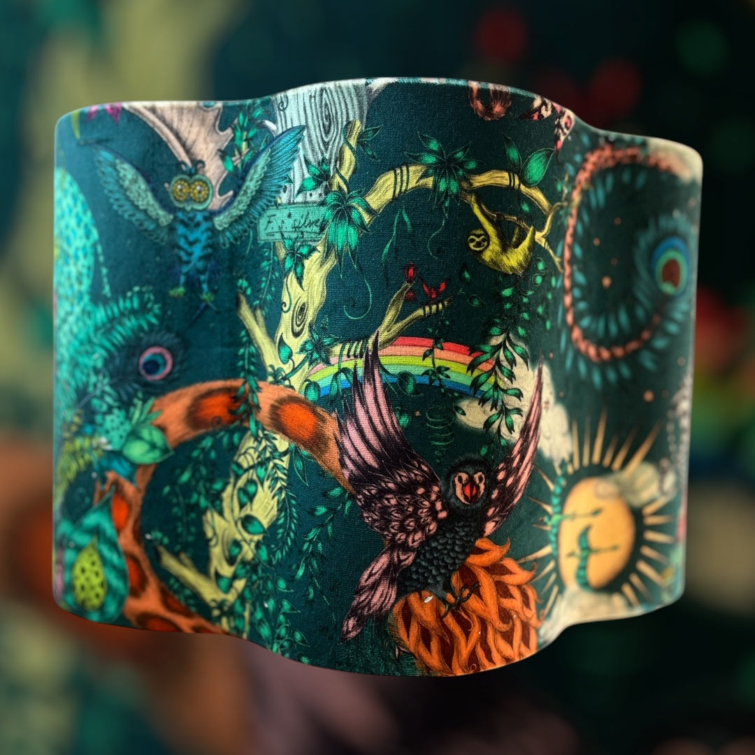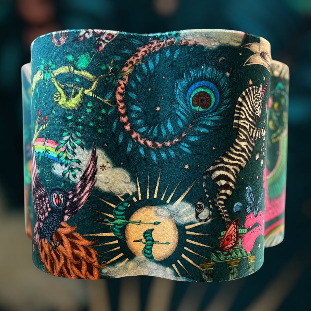 40 cm scalloped lampshade made with Emma Shipley Paradise Lost velvet fabric from the Mythical Collection.